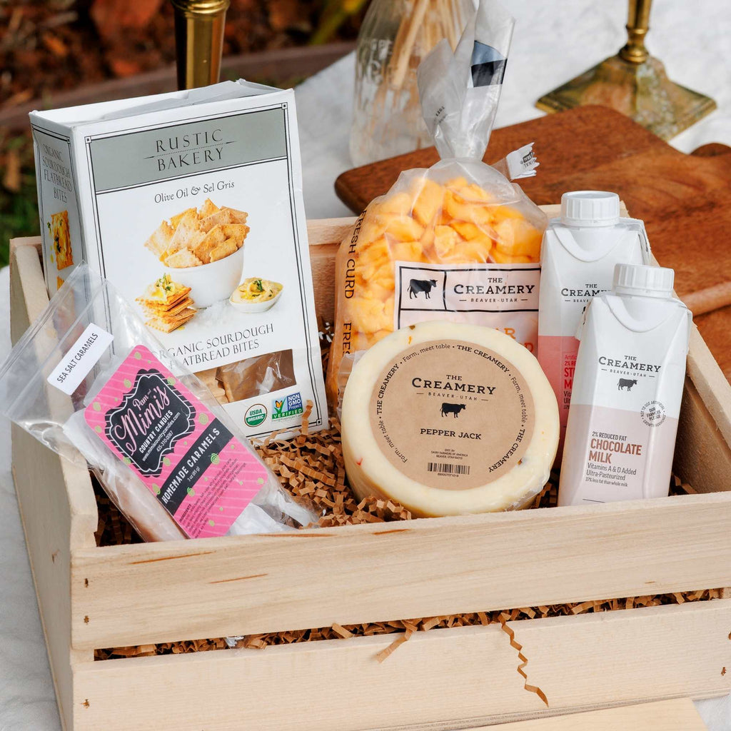 Looking for a gift that’s equal parts thoughtful and delicious? Or maybe just a little something to brighten your own day? Self Care is our most budget-friendly curated box, packed with artisan cheeses and handcrafted goodness. Each cheese is made in Beaver, Utah, using fresh dairy from family farms, and hand-packed with love by our team of cheese lovers. This box is an invitation to slow down, savor, and treat yourself—you deserve it.