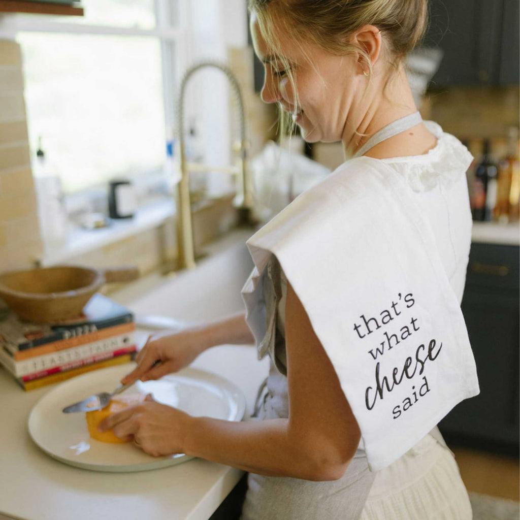 Not your grandma's flour sack towel! Our cheese pun designs or classic branded, 100 percent cotton flour sack towels are the perfect accessory for the sassy kitchen or an amusing conversation starter for the mixologist's bar.